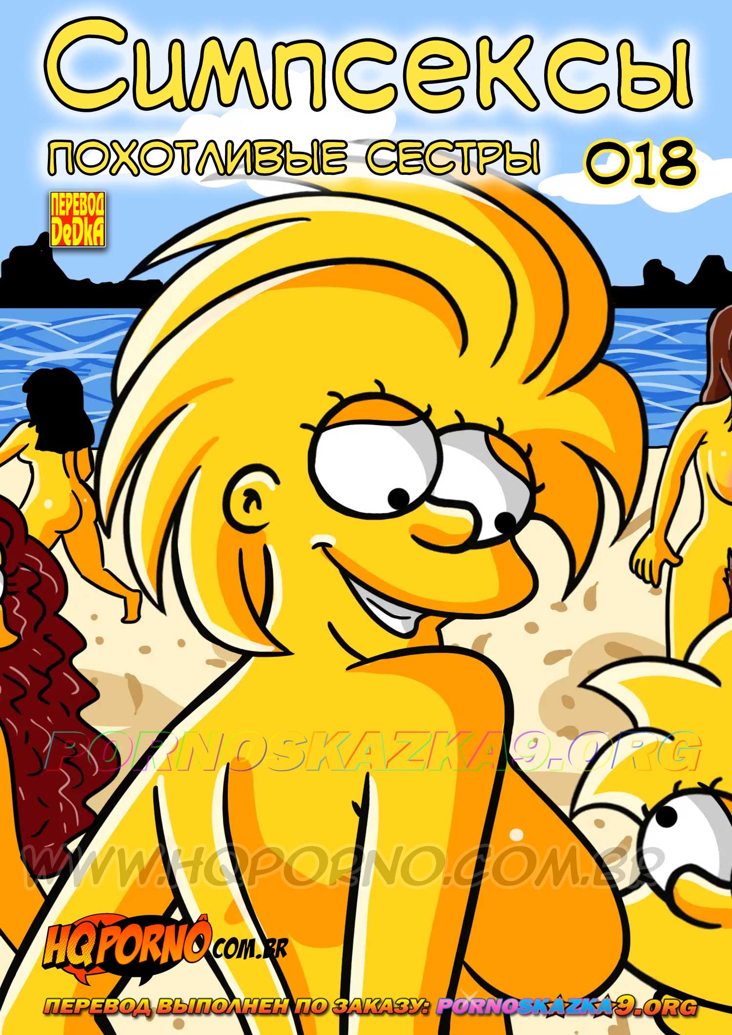Порно комикс Симпсексы. Часть 18. Похотливые сестры. Симпсоны разделились на нудистском пляже, Мардж и Барт вместе, сестры тоже вместе, а Гомер один…